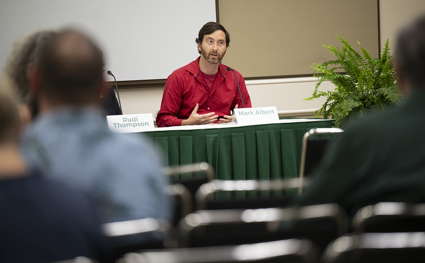 All of the panelists shared how they already use AI in their professional work. Song Fu, a professor in the computer science and engineering department, said he uses ChatGPT to help revise graduate students’ papers. Mark Albert in biomedical engineering uses the technology in his research to comb through medical records to track patient data during recovery.